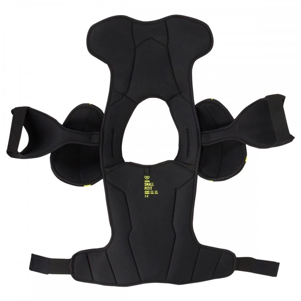 - Sternum, spine and clavicle are constructed with medium-density foams with plastic inserts for added protection.